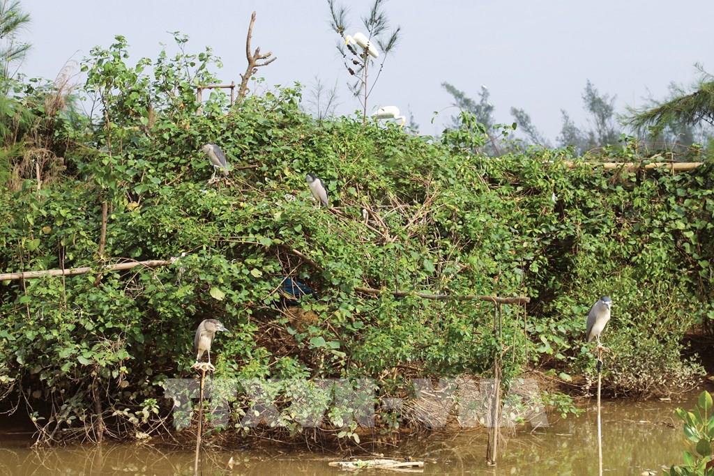 Khu vực bãi bồi ven biển ngoài đê chắn sóng của xã An Châu (tỉnh Nghệ An) cũng bị biến thành khu vực bẫy, bắt chim hoang dã quy mô lớn. Ảnh: Xuân Tiến - TTXVN