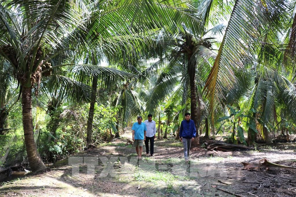 Vườn dừa hữu cơ 1 ha của dia đình ông Mai Văn On, xã Tam Ngãi. Ảnh: Thanh Hòa- TTXVN