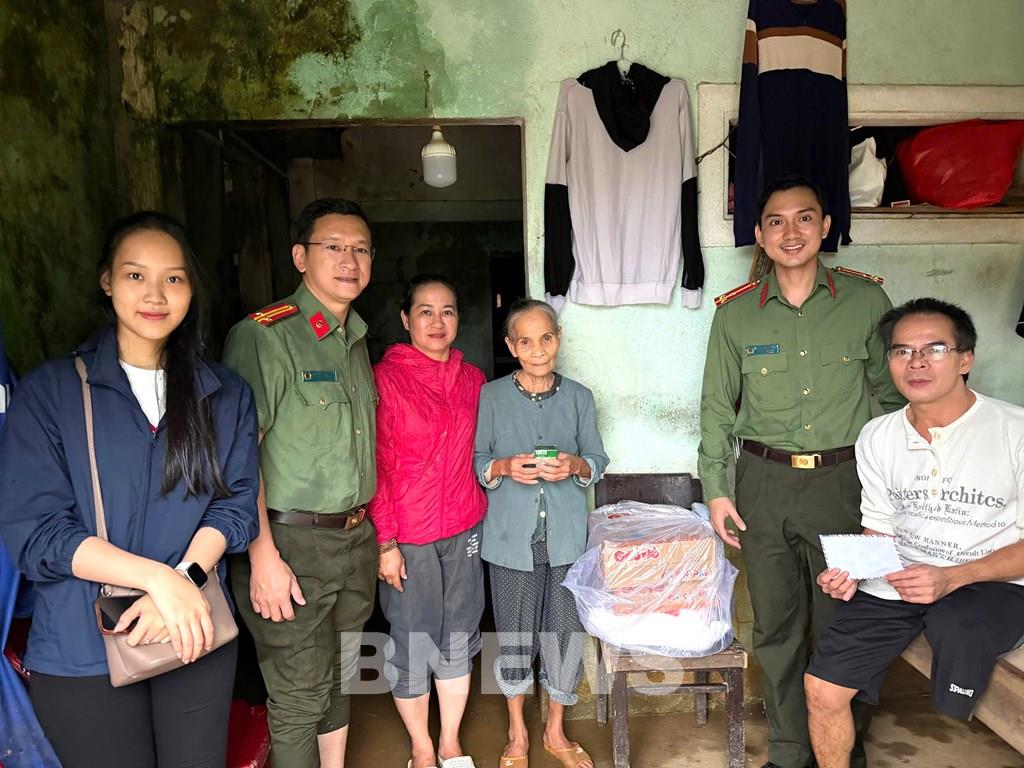 Ban Thanh niên Công an tỉnh An Giang cùng nhà hảo tâm đến tận gia đình trao quà cho bà con bị ảnh hưởng do bão, lũ ở Huế. Ảnh: Văn Vũ -TTXVN