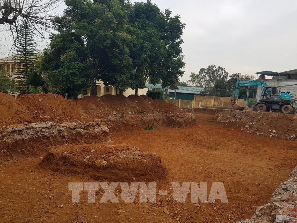 Ngay sau khi phát hiện sự việc, UBND Thành phố Thanh Hóa đã chỉ đạo UBND phường Hàm Rồng tạm dừng thi công công trình, tiến hành căng dây bảo vệ quanh khu vực phát hiện di vật, lập biên bản hiện trạng, kê chi tiết các di vật được phát hiện. Ảnh: Hoa Mai - TTXVN