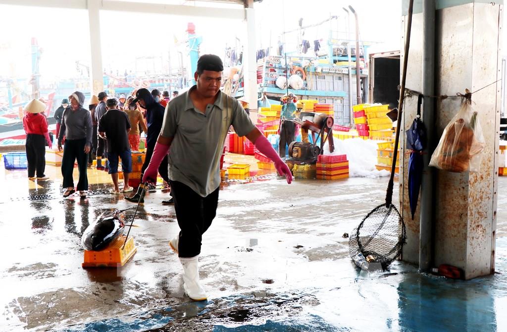 Vận chuyển cá lên bờ.Ảnh: Cao Nguyên-TTXVN