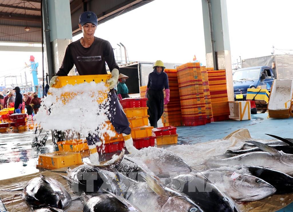 Bảo quản cá trước khi vận chuyển đi tiêu thụ. Ảnh: Cao Nguyên-TTXVN
