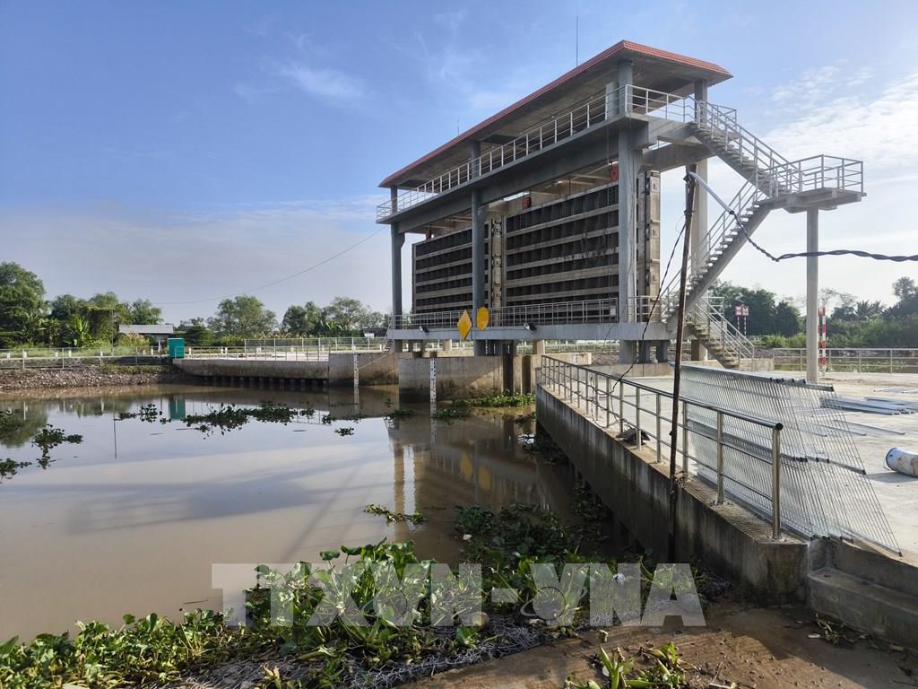 Cống vàm Định Bình, xã Chợ Lách, tỉnh Vĩnh Long đã xây dựng xong chờ nghiệm thu đưa vào sử dụng. Ảnh: Huỳnh Phúc Hậu - TTXVN