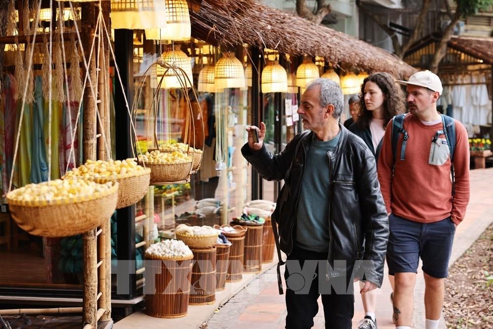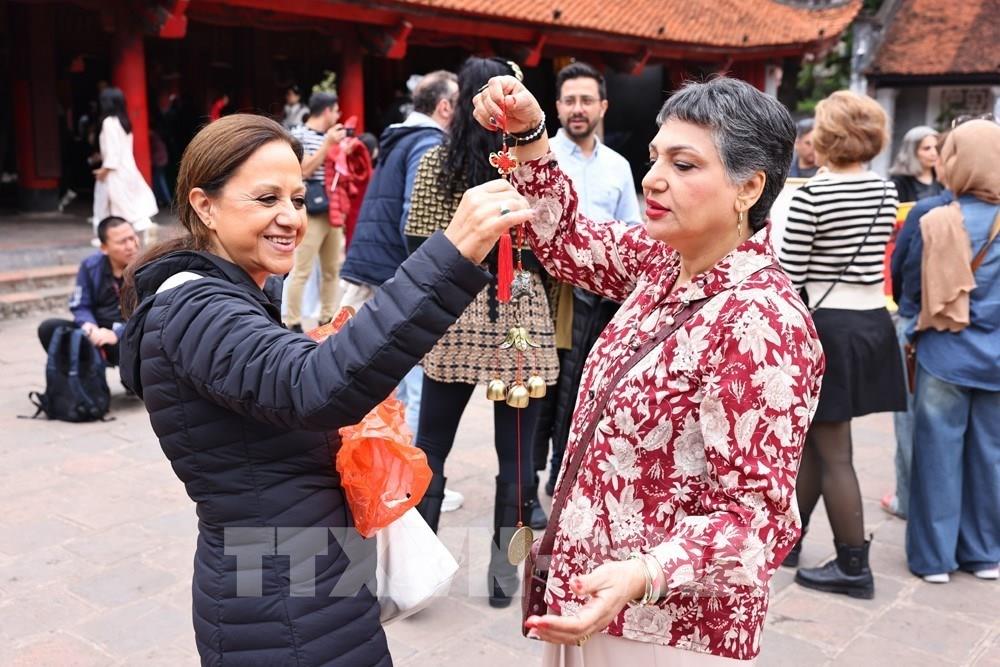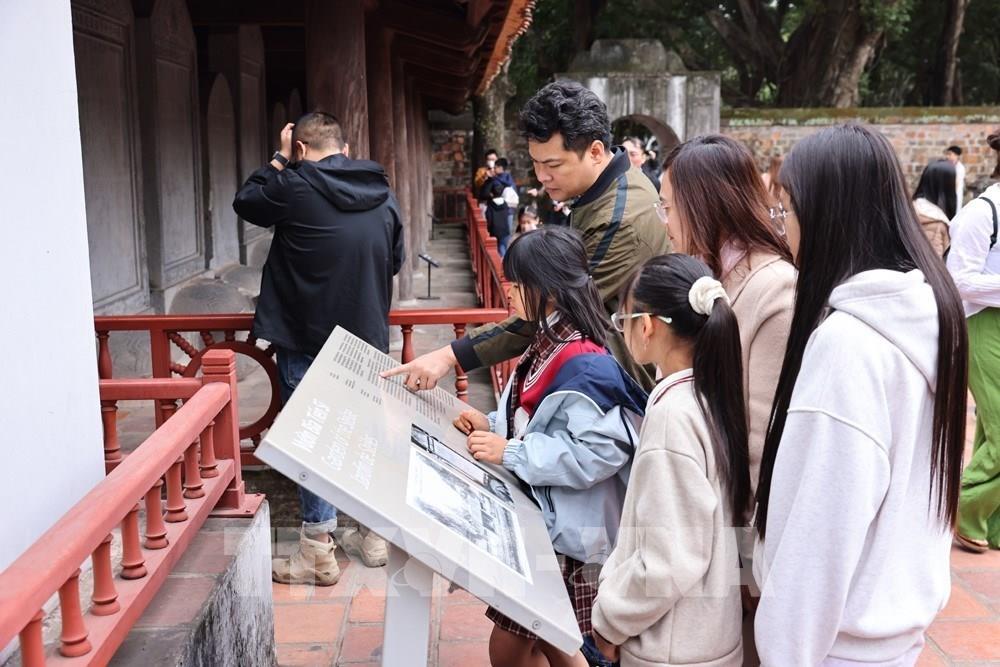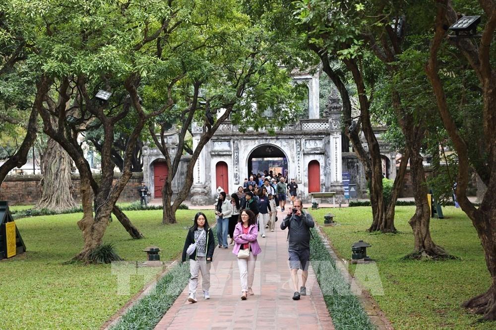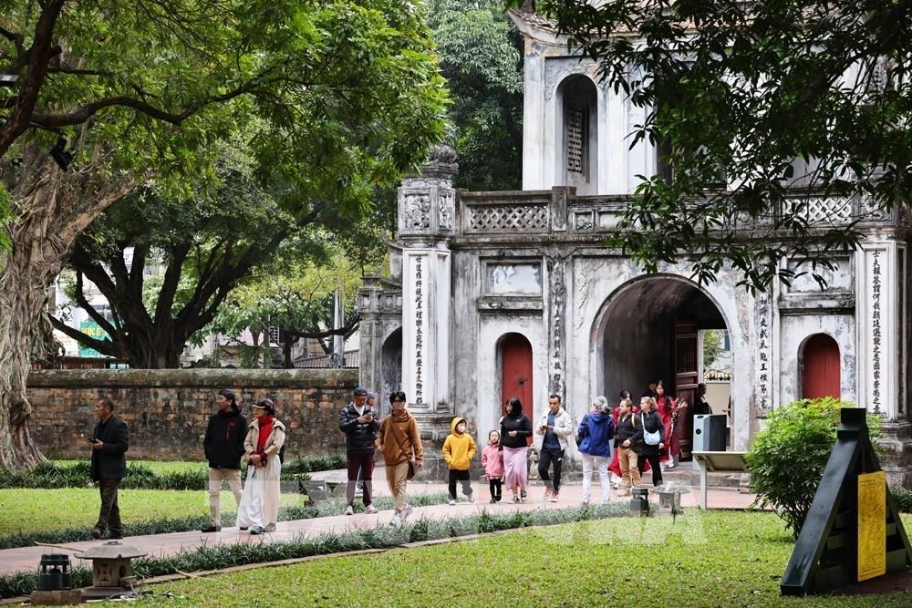Đông đảo du khách thủ đô và nước ngoài tham quan di tích Văn Miếu - Quốc Tử Giám trong ngày nghỉ lễ. Ảnh: Minh Đức – TTXVN