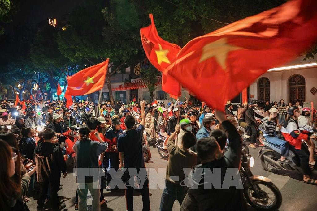 Sau chiến thắng kịch tính 3–2 trước U22 Thái Lan ở chung kết SEA Games 33, đêm 18/12, nhiều tuyến phố Hà Nội rộn ràng sắc đỏ cờ Tổ quốc, người dân hân hoan chia vui cùng đội tuyển U22 Việt Nam.