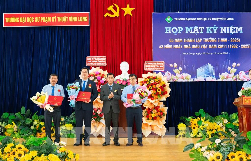 PGS.TS Nguyễn Thanh Tùng trong lễ kỷ niệm 43 năm Ngày Nhà giáo Việt Nam 20/11 tại Trường Đại học Sư phạm Kỹ thuật Vĩnh Long. Ảnh: Phúc Sơn - TTXVN