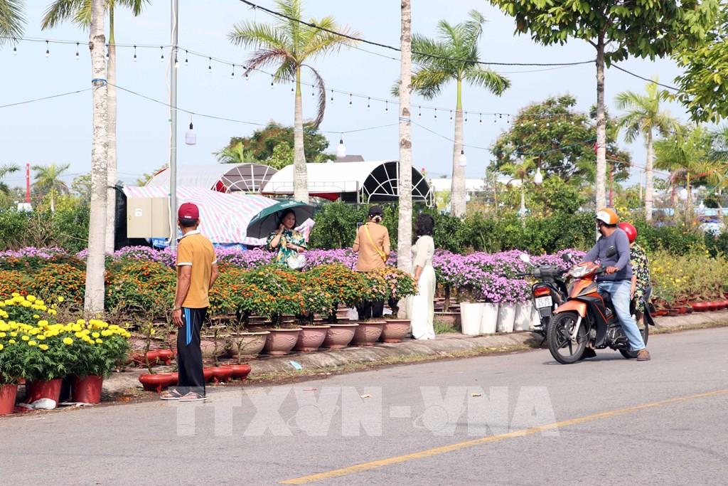 Người dân thành phố tranh thủ những ngày nghỉ sớm để tham quan, chụp ảnh và lựa chọn những chậu hoa ưng ý nhất. Ảnh: Trung Kiên - TTXVN