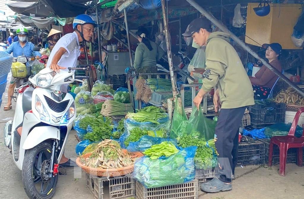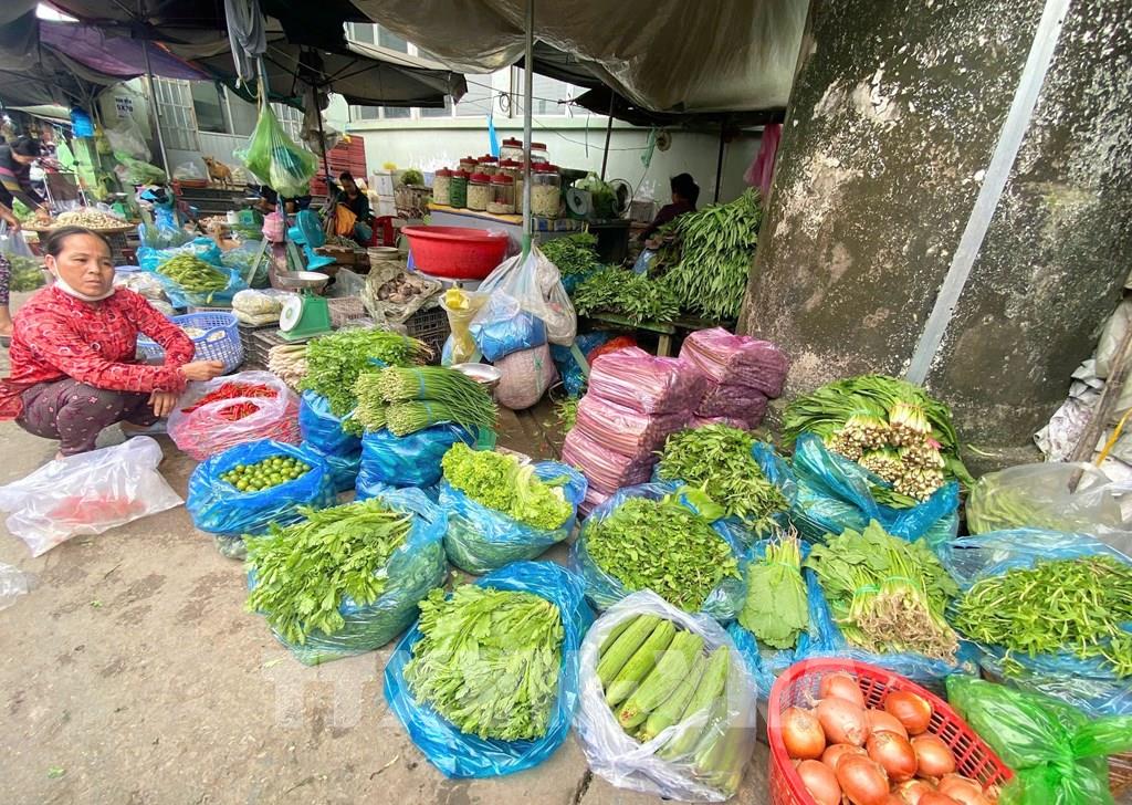 Một điểm bán rau, củ quả tại chợ đầu mối Long Xuyên, tỉnh An Giang. Ảnh: Công Mạo-TTXVN