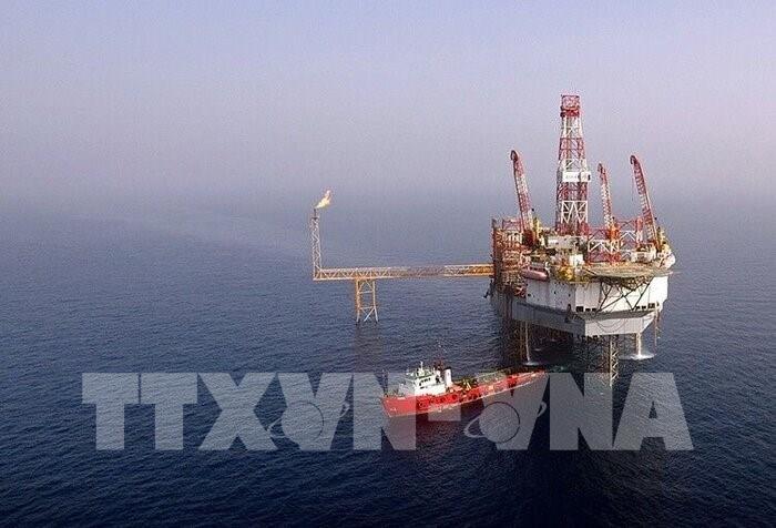 Tàu Sahar 2 rời giàn khoan dầu ngoài khơi Resalat để tới đảo Kharg của Iran. Ảnh: IRNA/TTXVN