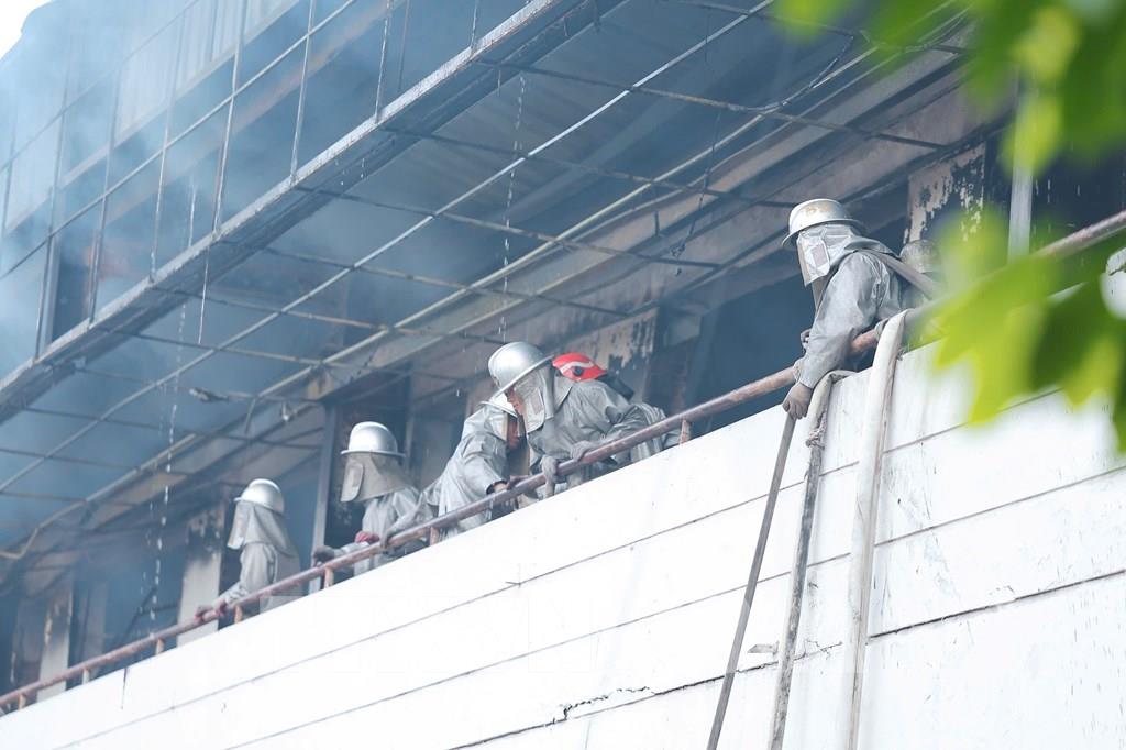 Các lực lượng có mặt ở hiện trường để chữa cháy, cứu hộ cứu nạn. Theo thông tin ban đầu, đám cháy cơ bản đã được khống chế. Ảnh: Lê Đông - TTXVN