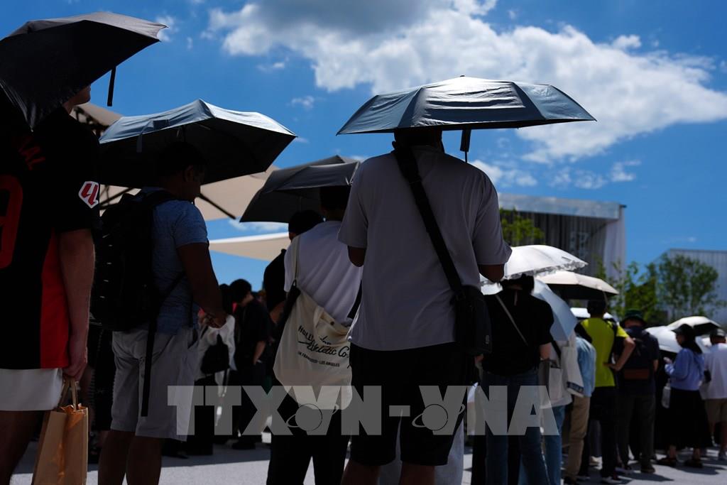 Người dân che ô tránh nắng nóng tại Osaka, Nhật Bản. Ảnh: THX/TTXVN
