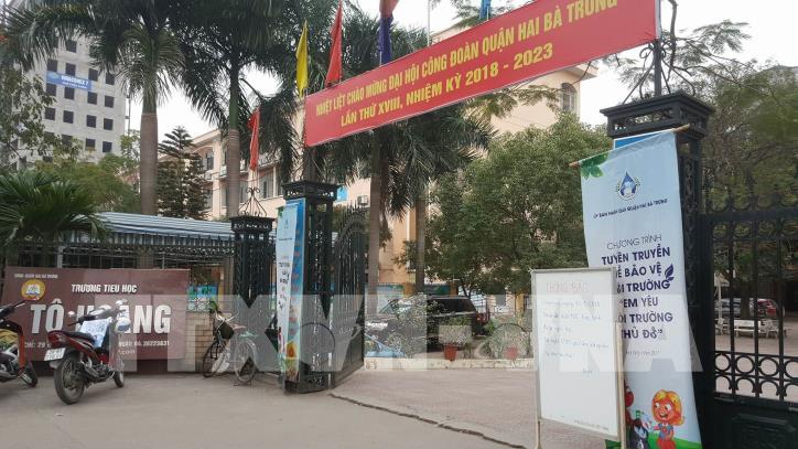Trường tiểu học Tô Hoàng (Hà Nội) thông báo nghỉ học ngày 30/1. Ảnh: Thành Đạt - TTXVN