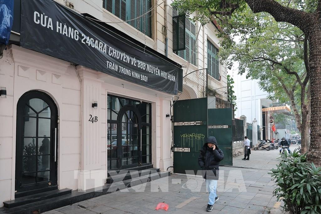 Nhiều cửa hàng trên mặt phố Lý Thái Tổ, phường Hoàn Kiếm bàn giao mặt bằng. Ảnh: Lê Đông - TTXVN