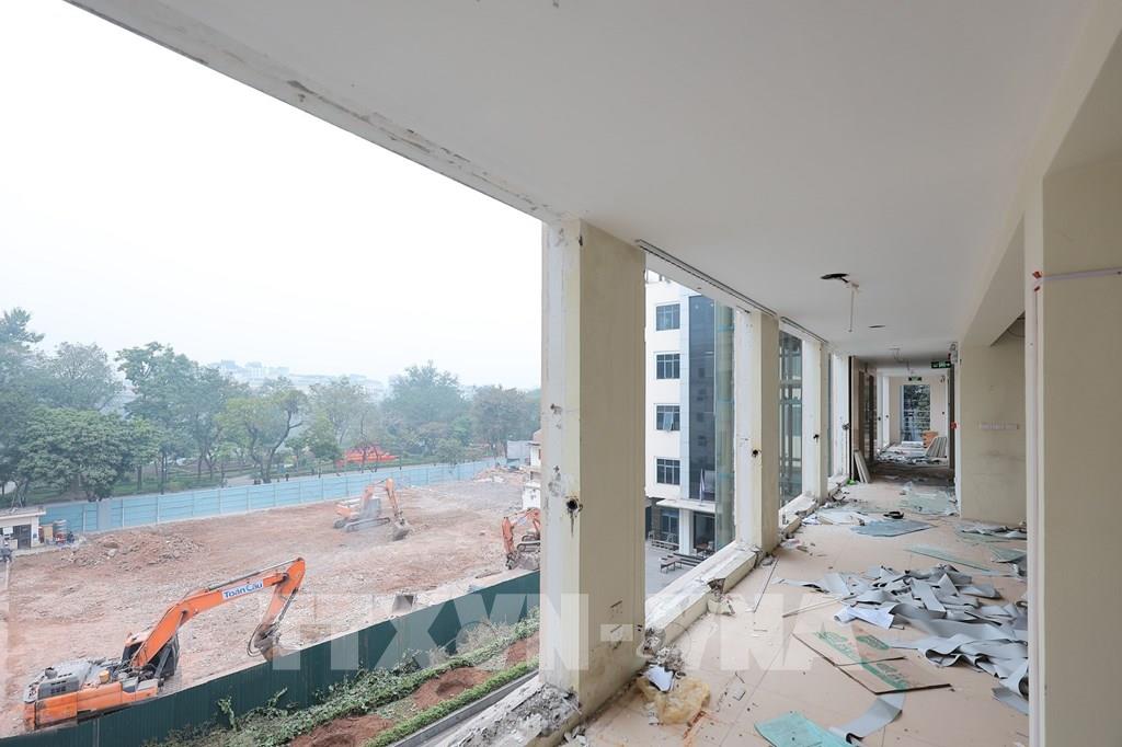 Bên trong công trình đã tháo dỡ mặt bằng phía Đông hồ Hoàn Kiếm. Ảnh: Lê Đông - TTXVN