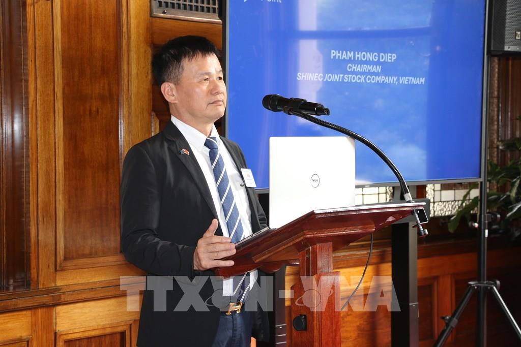 Ông Phạm Hồng Điệp, Chủ tịch Công ty Cổ phần SHINEC, đơn vị tiên phong tại Việt Nam chuyên đầu tư, phát triển và kinh doanh hạ tầng khu công nghiệp sinh thái, phát biểu. Ảnh: Thanh Tú-PV TTXVN tại Australia
