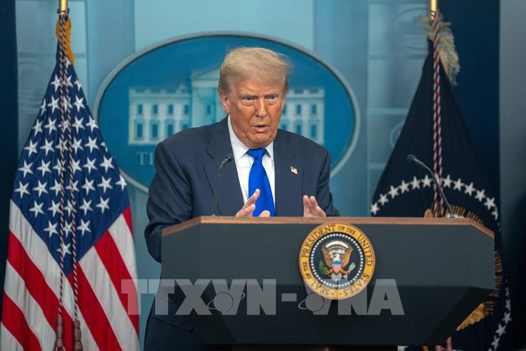 Tổng thống Mỹ Donald Trump phát biểu tại cuộc họp báo ở Nhà Trắng, Washington, D.C. Ảnh: THX/TTXVN