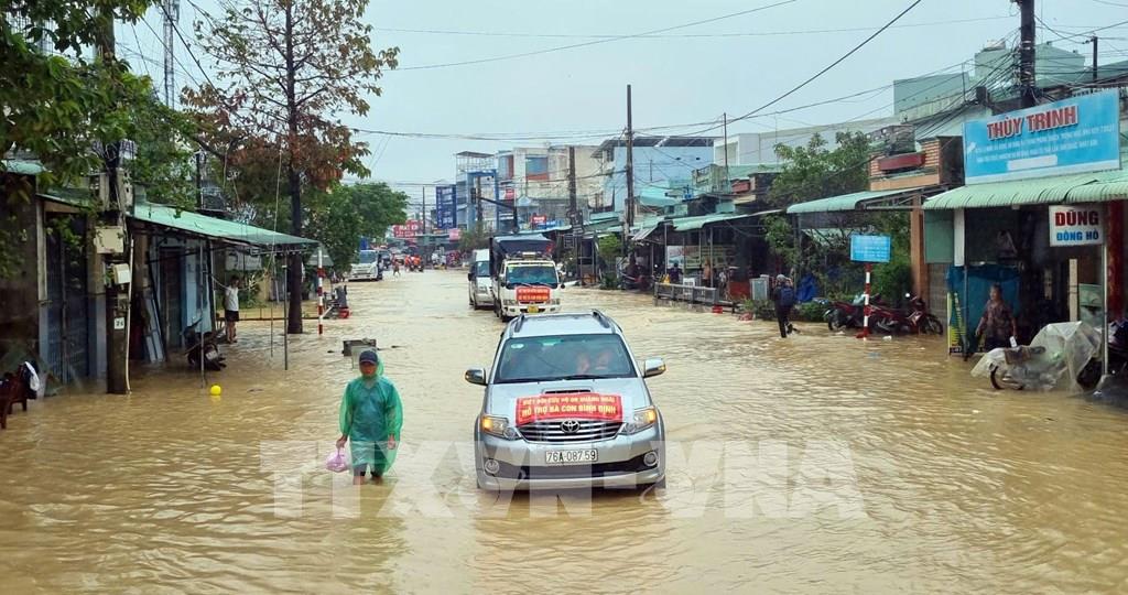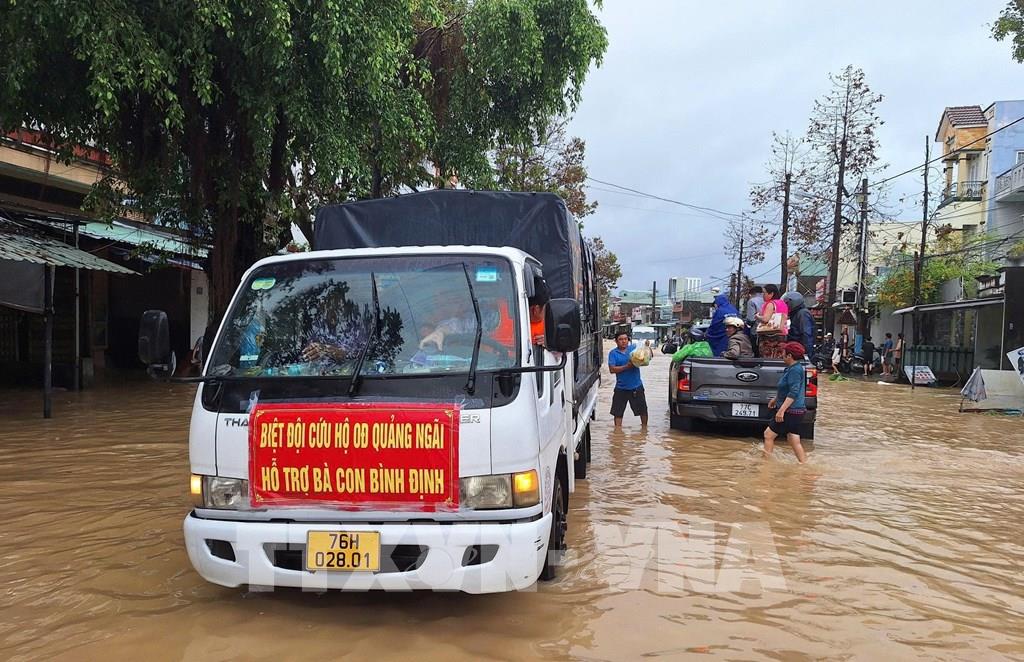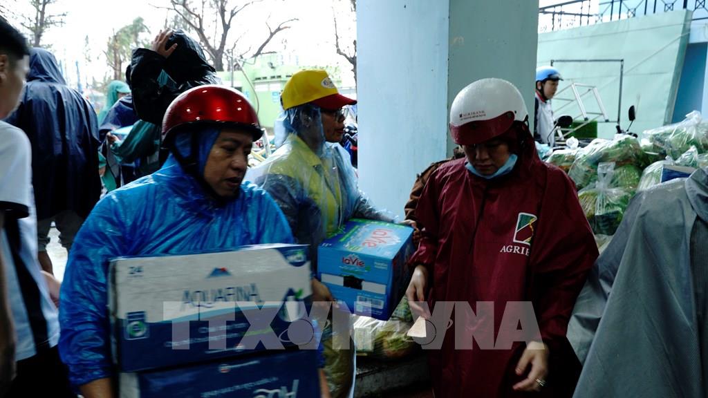 Người dân Quy Nhơn tất bật vận chuyển hàng cứu trợ. Ảnh: Đình Quân-TTXVN