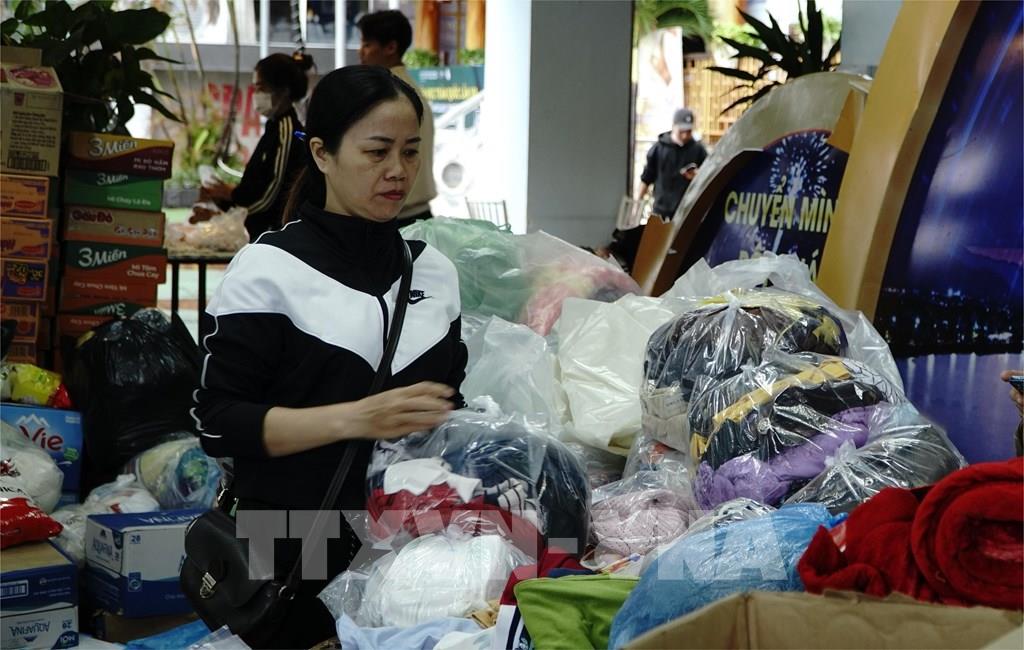 Quần áo được đóng gói cẩn thận trước khi gửi vào vùng lũ. Ảnh: Đình Quân-TTXVN