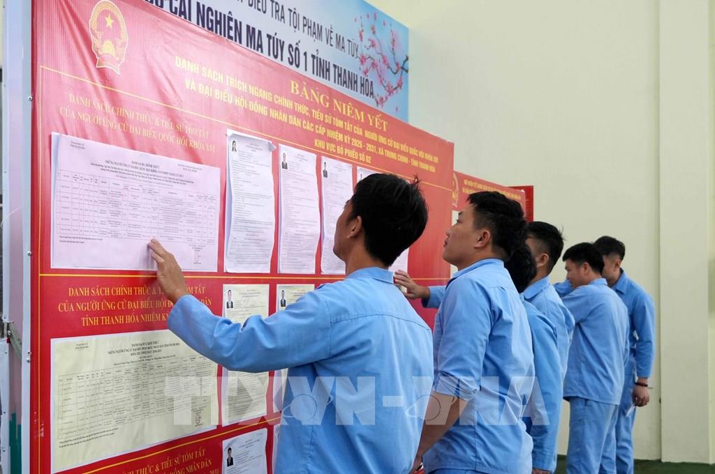 Sáng 15/3/2026, những cử tri là học viên, người tạm giữ cùng nhau tham gia quyền và nghĩa vụ của mình để bỏ lá phiếu bầu cử đại biểu Quốc hội khoá XVI và đại biểu HĐND các cấp nhiệm kỳ 2026 - 2031 tại những điểm đặc biệt là Trại tạm giam Công an tỉnh, các cơ sở cai nghiện tỉnh Thanh Hóa.