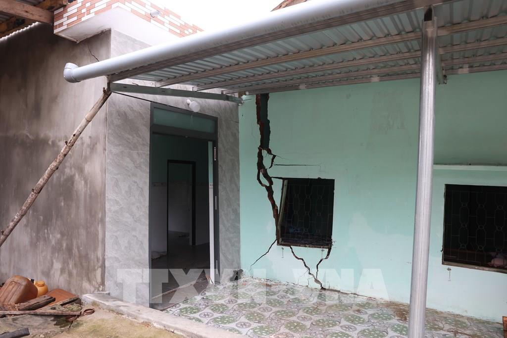 Nhà cửa của người dân thôn Vĩnh Xuân, xã Tuy An Tây, tỉnh Đắk Lắk bị nứt toác do mưa lớn gây sạt lở đất. Ảnh: Tuấn Anh - TTXVN