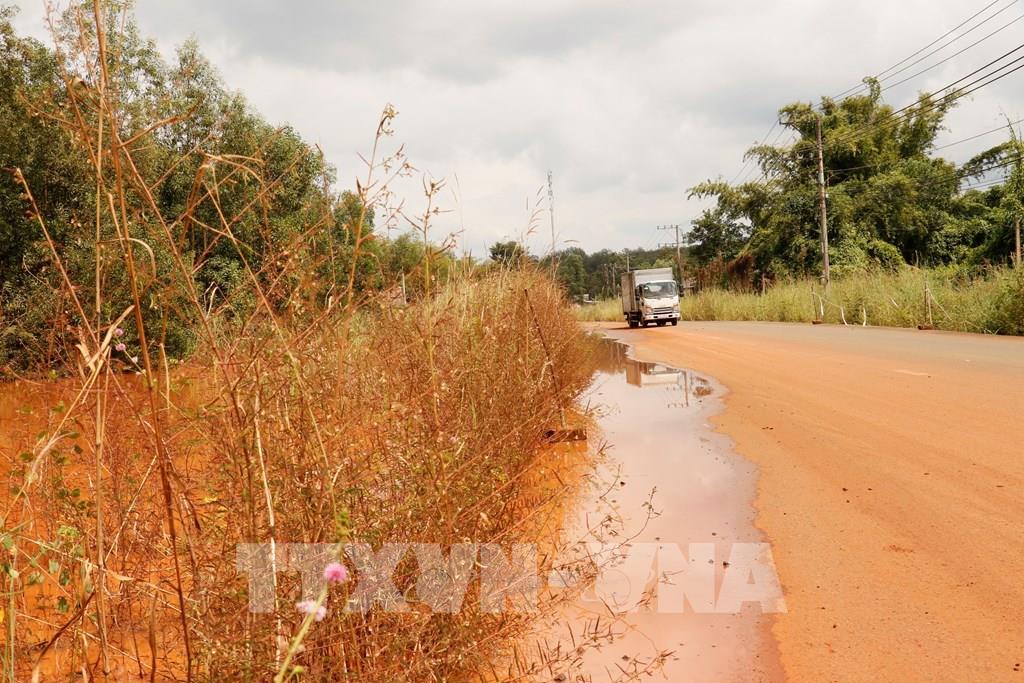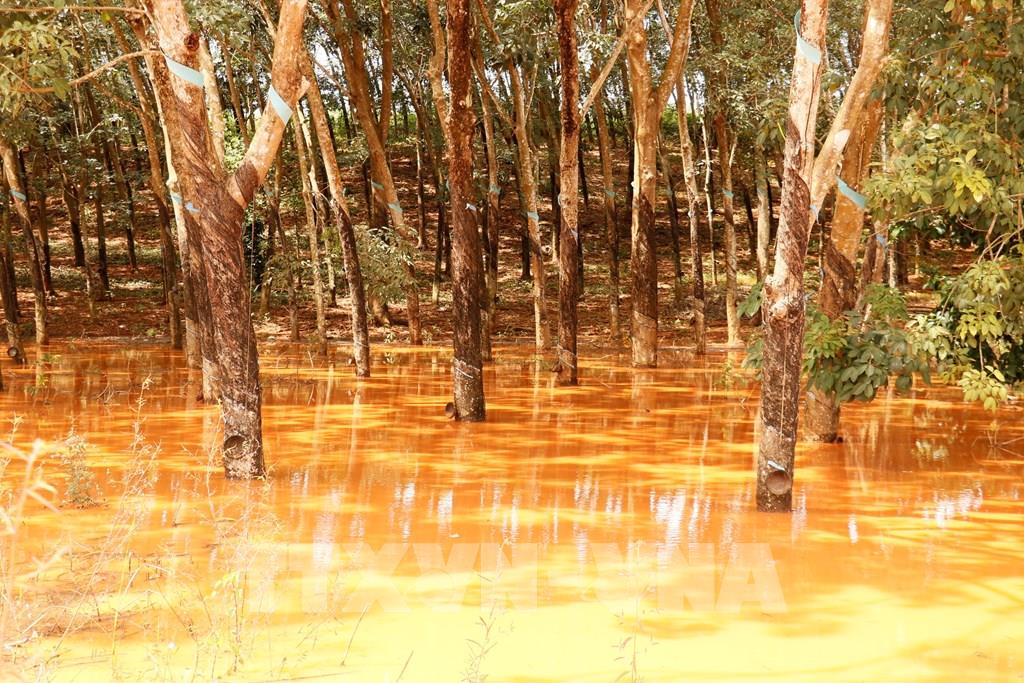 Dự án nâng cấp, mở rộng đường ĐT 753 thi công gây ngập vườn cao su bên đường. Ảnh: K GỬIH-TTXVN