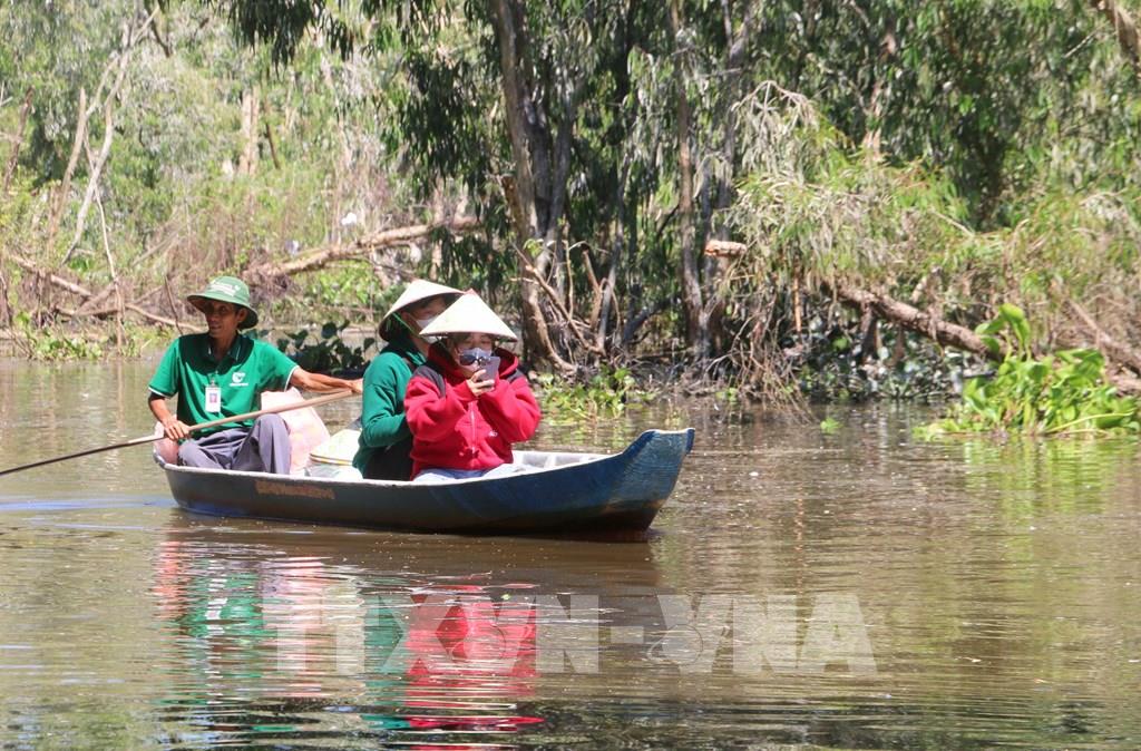 Rừng tràm Trà Sư đã trở thành một trong những điểm du lịch sinh thái tiêu biểu của tỉnh An Giang, thu hút hàng trăm nghìn lượt du khách trong nước và quốc tế đến tham quan, trải nghiệm mỗi năm. Ảnh: Công Mạo-TTXVN