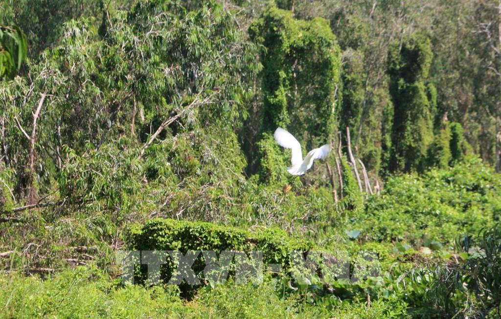 Rừng tràm Trà Sư có hệ động vật phong phú, với 70 loài chim thuộc 13 bộ và 31 họ, có 2 loài chim được ghi trong sách Đỏ Việt Nam. Ảnh: Công Mạo-TTXVN