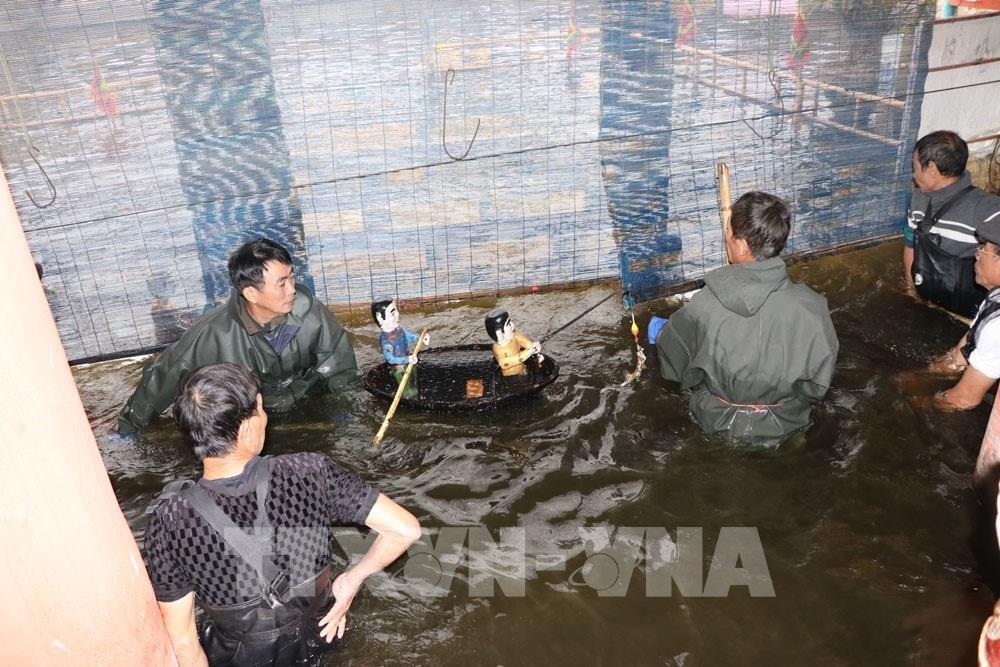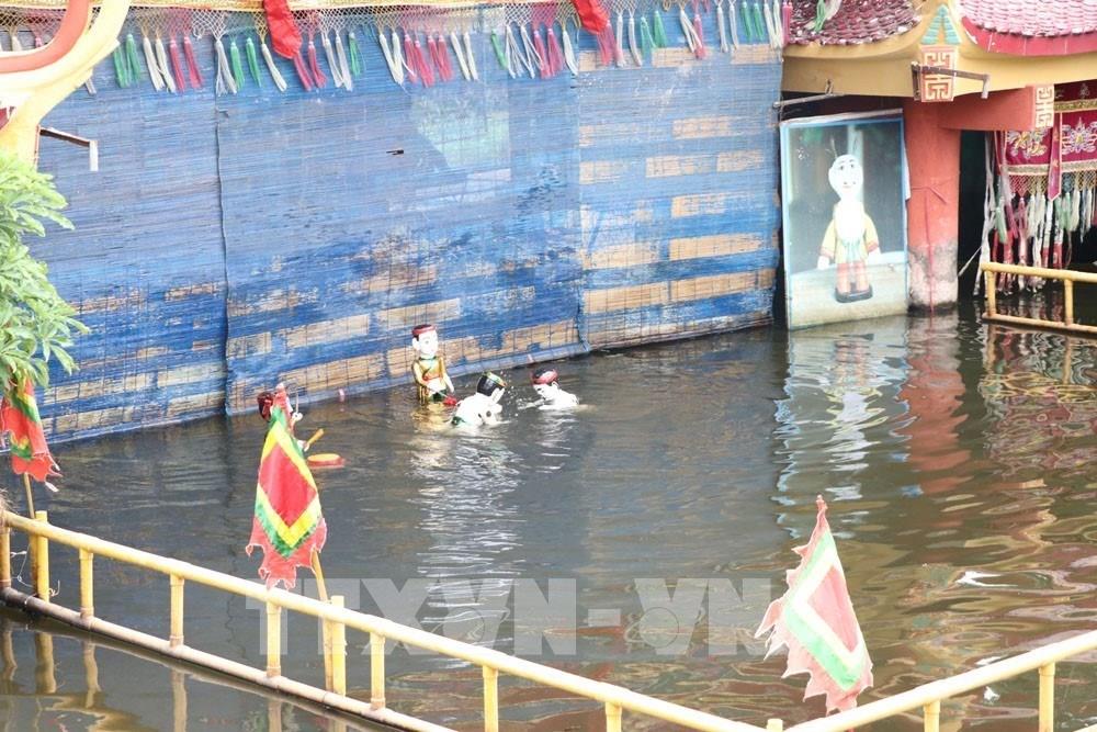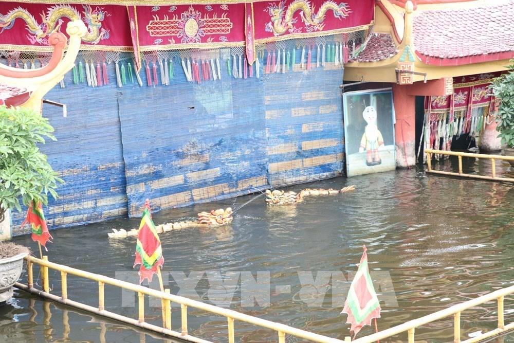 Tiết mục trong chương trình biểu diễn múa rối nước phục vụ du khách của phường múa rối nước Hồng Phong. Ảnh: Mạnh Minh - TTXVN