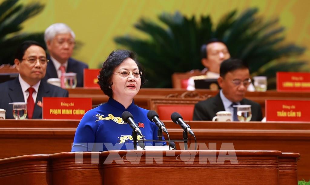 Đồng chí Phạm Thị Thanh Trà, Ủy viên Trung ương Đảng, Ủy viên Ban Thường vụ Đảng ủy Chính phủ, Phó Thủ tướng Chính phủ, tham luận về vấn đề: "Xây dựng Chính phủ kiến tạo phát triển, liêm chính, hành động quyết liệt, phục vụ Nhân dân”. Ảnh: TTXVN