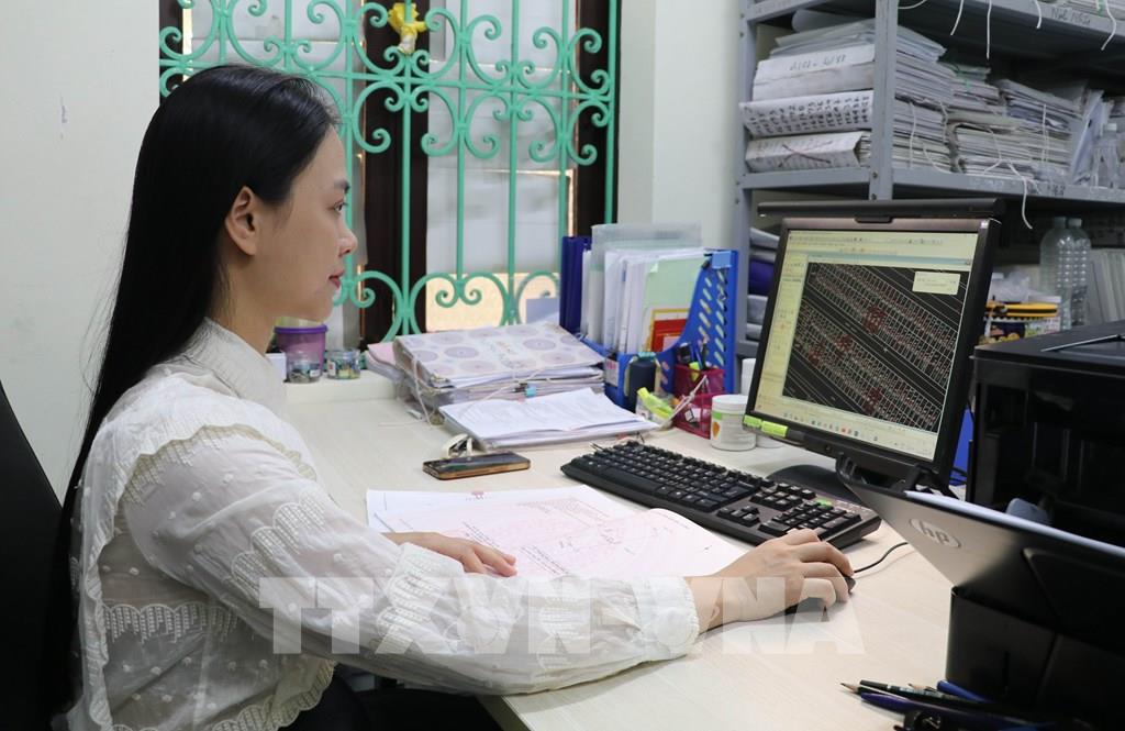 Sử dụng các hệ thống phần mềm chuyên môn vào vận hành để phục vụ giải quyết các hồ sơ thủ tục hành chính. Ảnh: Thùy Dung - TTXVN