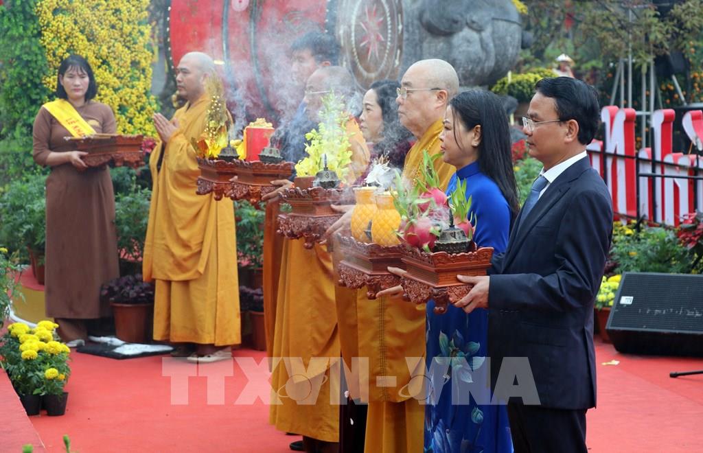 Đại biểu dự nghi lễ dâng hương cầu nguyện Quốc thái dân an, dâng lục cúng. Ảnh: Thùy Dung - TTXVN