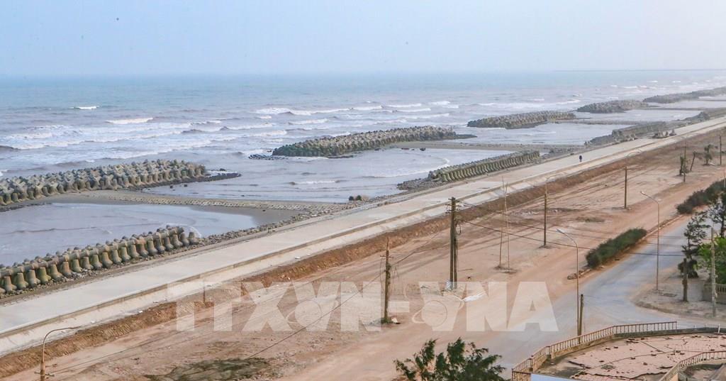Dự án củng cố, hoàn thiện và xử lý sạt lở đê biển Cồn Tròn, Hải Thịnh (xã Hải Thịnh) đã cơ bản hoàn thiện, sẵn sàng phục vụ cho mùa du lịch biển năm 2026. Ảnh: Công Luật - TTXVN