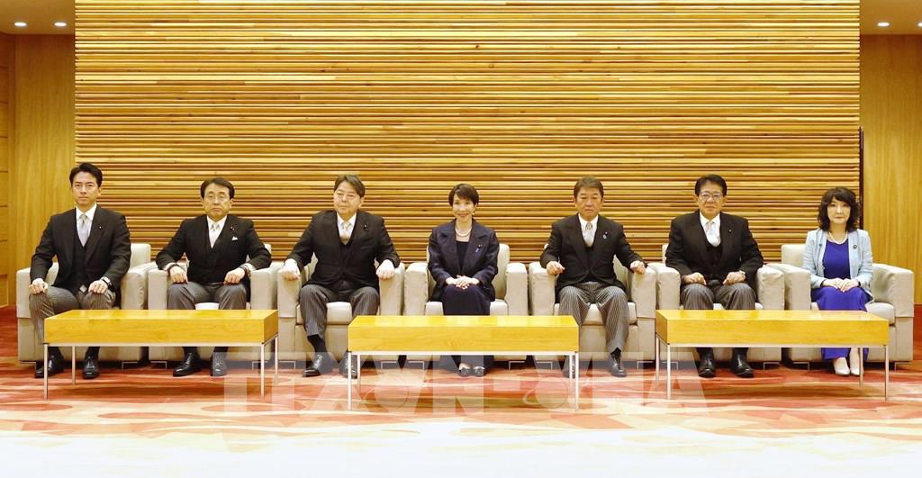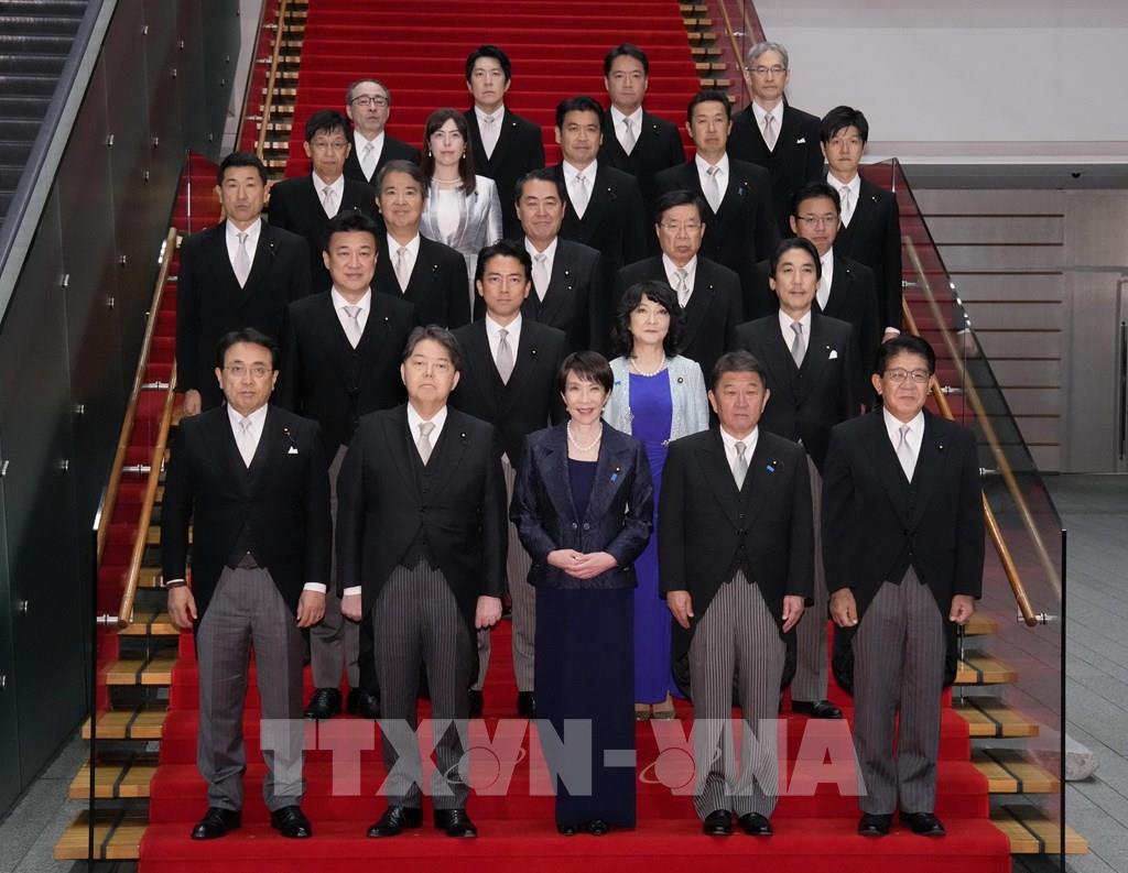 Thủ tướng Nhật Bản Takaichi Sanae (giữa, hàng trước) cùng các thành viên nội các chụp ảnh chung tại Tokyo ngày 21/10/2025. Ảnh: Kyodo/TTXVN