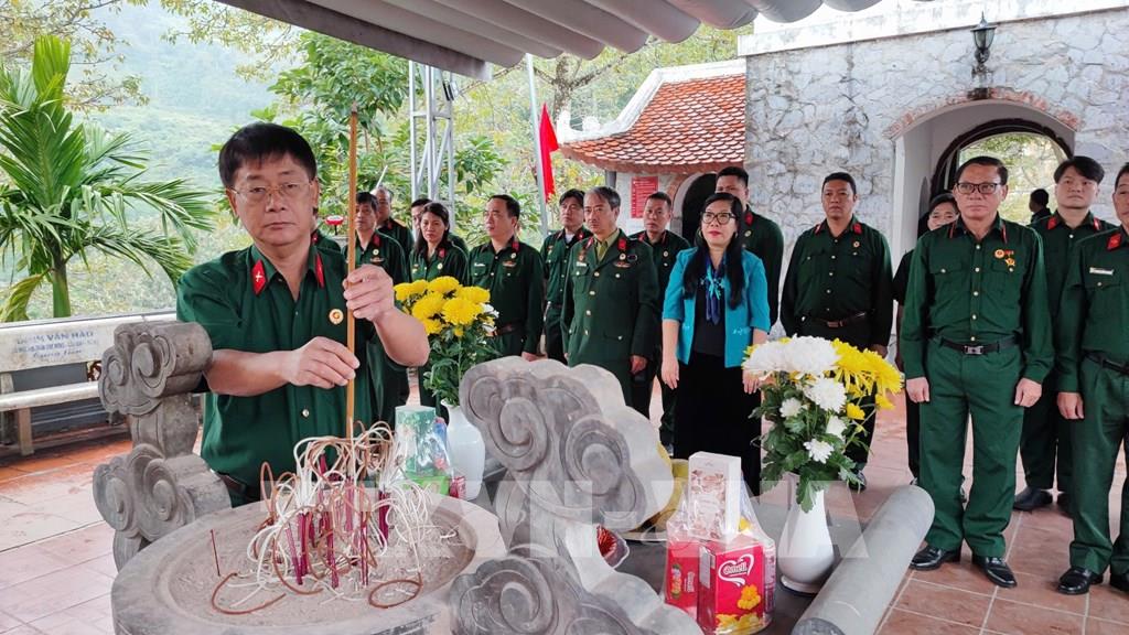 Hội Cựu chiến binh TTXVN dâng hoa, dâng hương tại Đài tưởng niệm các Anh hùng Liệt sĩ điểm cao 468 (thôn Nặm Ngặt, xã Thanh Thủy, tỉnh Tuyên Quang). Ảnh: Minh Tâm -TTXVN