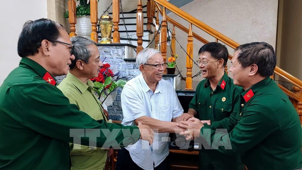 Hội Cựu chiến binh TTXVN thăm nhà báo, nghệ sĩ nhiếp ảnh Hoàng Thiểm - một trong hai phóng viên đầu tiên của miền Bắc có mặt tại Dinh Độc Lập trưa ngày 30/4/1975. Ảnh: Minh Tâm -TTXVN