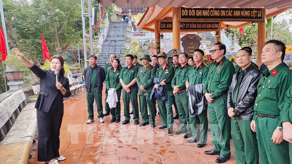 Hội Cựu chiến binh TTXVN nghe giới thiệu về các trận chiến đấu ác liệt trong cuộc chiến tranh bảo vệ biên giới phía Bắc tại Mặt trận Vị Xuyên. Ảnh: Minh Tâm-TTXVN