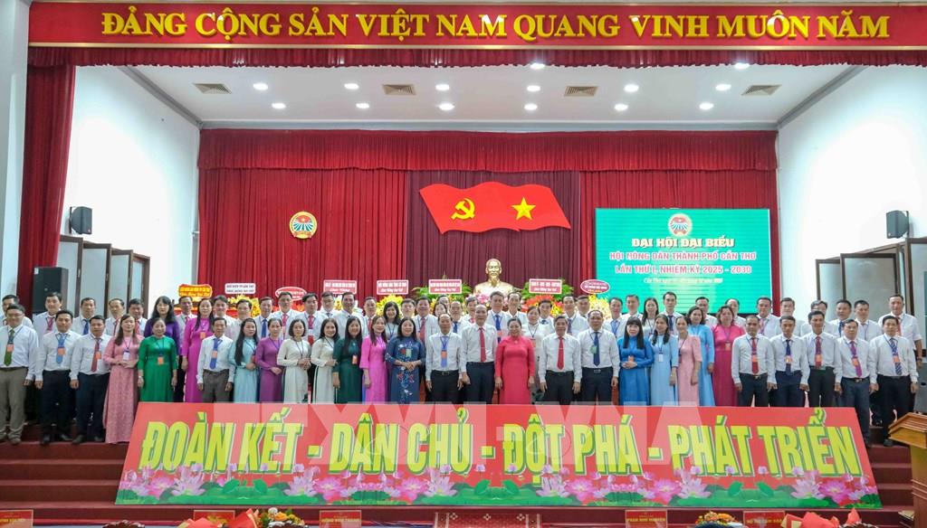Lãnh đạo Trung ương Hội Nông dân Việt Nam, lãnh đạo thành phố Cần Thơ chụp ảnh chung với Ban Chấp hành Hội Nông dân thành phố Cần Thơ khóa I, nhiệm kỳ 2025 - 2030. Ảnh: Thanh Liêm - TTXVN
