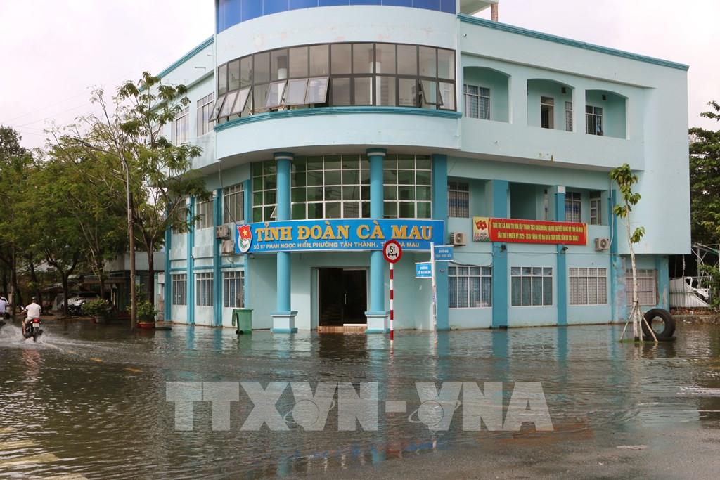 Một góc ở nội ô tỉnh Cà Mau ngập sâu trong nước. Ảnh: Tuấn Phi - TTXVN