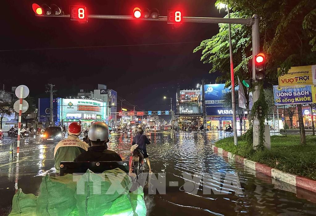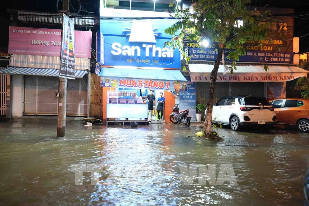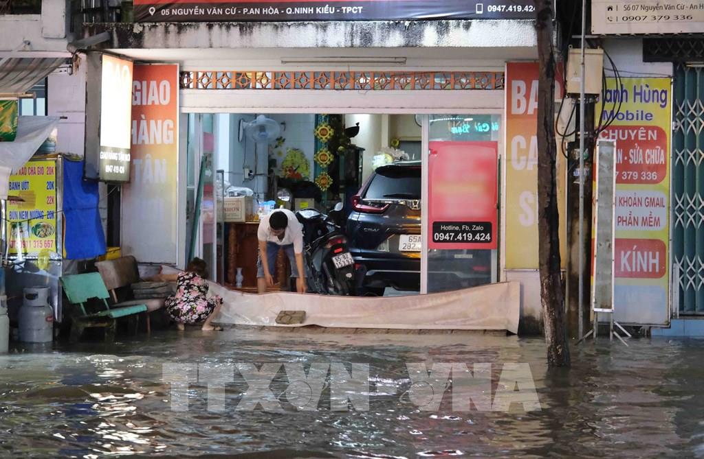 Đỉnh triều xuất hiện đúng vào giờ tan tầm và kèm theo mưa lớn, khiến nhiều tuyến đường thành phố Cần Thơ ngập sâu trong nước, gây ách tắc giao thông và làm xáo trộn lớn đến đời sống người dân.