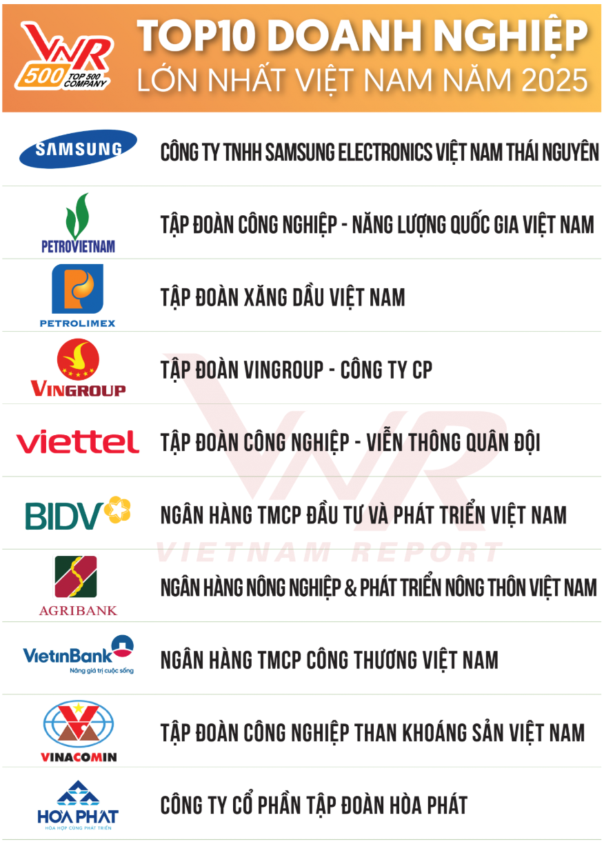 Bảng xếp hạng VNR500 - Top 500 doanh nghiệp lớn nhất Việt Nam năm 2025. Ảnh: Vietnam Report