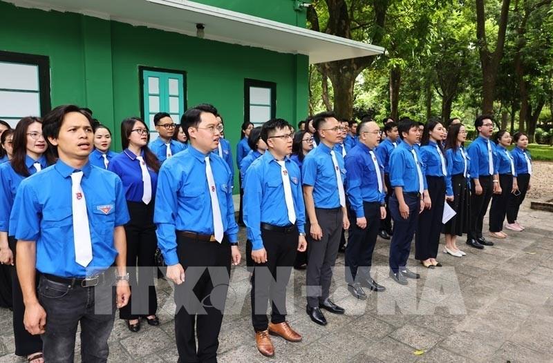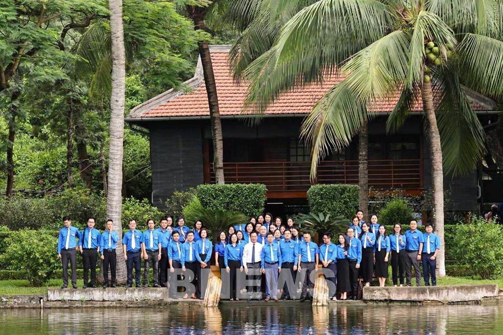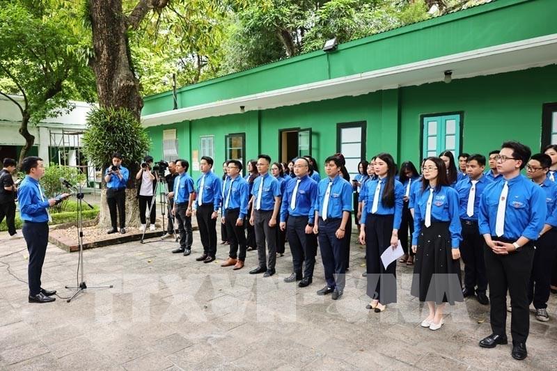Trước đó, sáng 18/6/2025, Đoàn đại biểu Nhà báo trẻ tiêu biểu thuộc Đoàn Thanh niên Chính phủ năm 2025 làm lễ báo công dâng Bác tại Nhà 67 trong Khu Di tích Chủ tịch Hồ Chí Minh tại Phủ Chủ tịch. Ảnh: Minh Đức – TTXVN