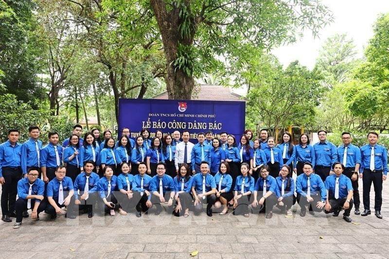 Các đại biểu Nhà báo trẻ tiêu biểu thuộc Đoàn Thanh niên Chính phủ năm 2025 báo công dâng Bác. Ảnh: Bnews/vnanet phát