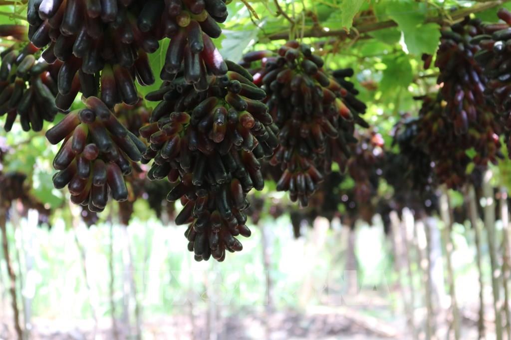 Giống nho không hạt NH04-102 (nho ngón tay đen) đang được các hộ nông dân ở Khánh Hòa trồng nhân rộng. Ảnh tư liệu: Nguyễn Thành – TTXVN