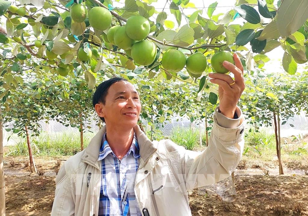 Giống táo TN01 được Viện Nghiên cứu Bông và Phát triển Nông nghiệp Nha Hố (phường Đô Vinh, tỉnh Khánh Hòa) nghiên cứu chọn tạo có khối lượng quả trung bình từ 80 - 100 gram, quả lớn có thể đạt tới 280 gram, độ ngọt brix trên 11%. Ảnh: TTXVN phát