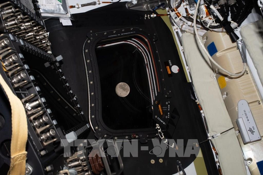 Mặt Trăng nhìn từ cửa sổ khoang tàu Orion, ngày 6/4/2026. Ảnh: THX/TTXVN