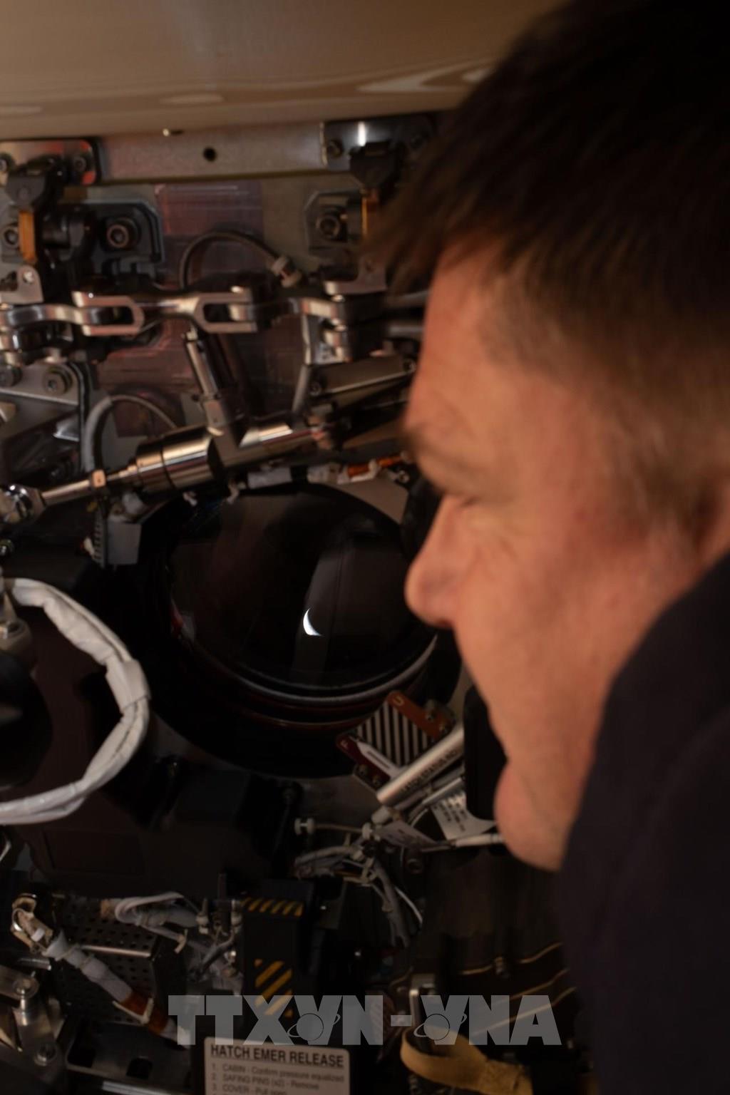 Phi hành gia Jeremy Hansen nhìn về phía Trái Đất qua cửa sổ khoang tàu Orion, ngày 6/4/2026. Ảnh: THX/TTXVN