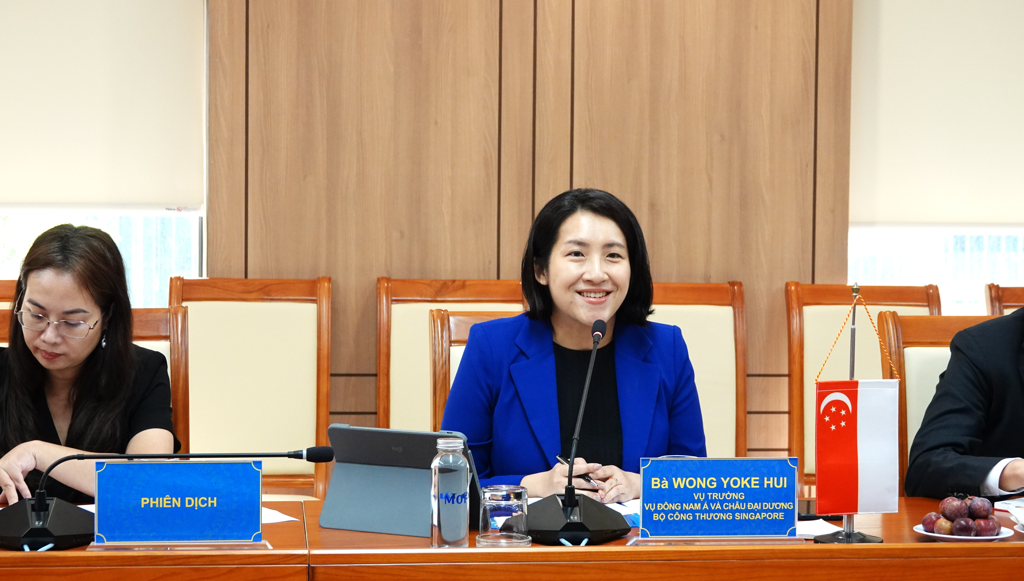 Bà Wong Yoke Hui - Vụ trưởng Vụ Đông Nam Á và Châu Đại dương, Bộ Công Thương Singapore phát biểu tại Phiên họp. Ảnh: MOF