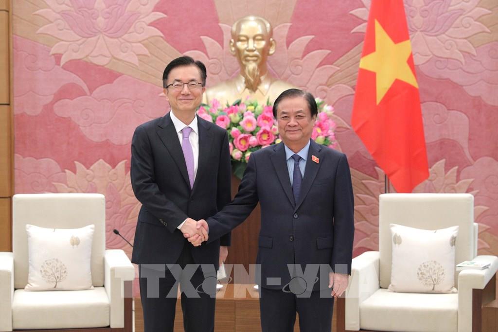 Phó Chủ tịch Quốc hội Lê Minh Hoan tiếp Phó Tổng Giám đốc phụ trách tài chính của Samsung Điện tử. Ảnh: TTXVN phát