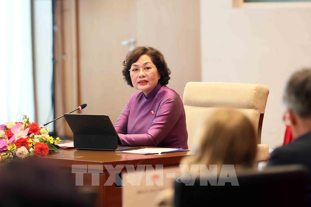 Phó Chủ tịch Quốc hội Nguyễn Thị Hồng làm việc với Đoàn doanh nghiệp Hội đồng Kinh doanh Hoa Kỳ – ASEAN. Ảnh: An Đăng - TTXVN