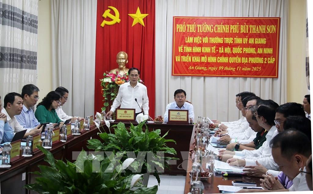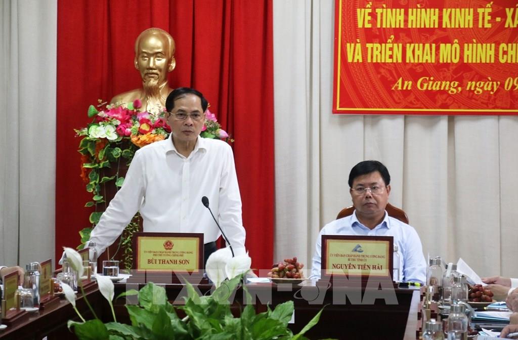 Phó Thủ tướng Bùi Thanh Sơn làm việc với Tỉnh ủy An Giang. Ảnh: Lê Huy Hải - TTXVN